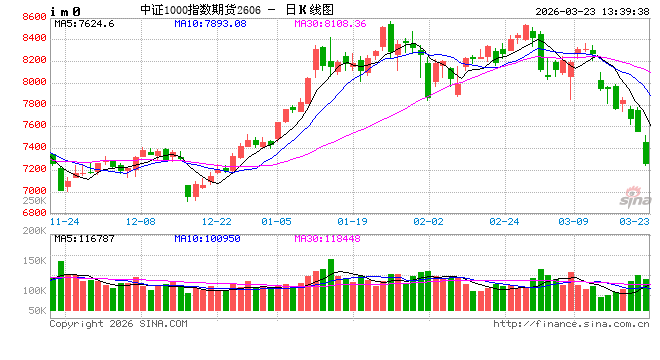 2026年3月23日,早盘收盘,沪深300股指期货(IF)主力合约跌2.95%,上证50股指期货(IH)主力合约跌2.78%,中证500股指期货(IC)主力合约跌3.27%,中证1000股指期货(IM)主力合约跌3.65%。