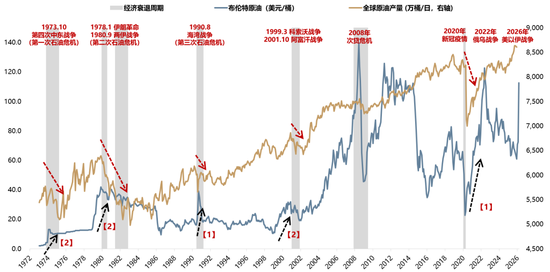 由地缘战争引发的重大石油供应短缺,历史上曾多次发生。例如,1973年的第四次中东战争(全球石油供应量减少6-7%)、1979年的伊朗革命(减少约4%) 、1980年的两伊战争(减少约4%)、1990年的海湾战争(减少约9%);另外1999年的科索沃战争,战事远离核心产油区,对原油供应无直接冲击,此后原油的上行周期,主要受到OPEC减产的影响。