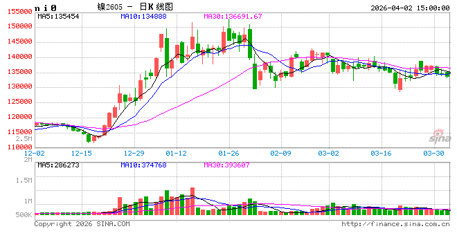 4月3日临近周末及清明假期,市场聚焦三大变量:美国非农数据(影响美联储降息预期,决定镍价是否技术性反弹)、LME与上期所库存变化(累库节奏影响止跌拐点)、节前资金情绪(多头谨慎,拉升动力不足)。短期镍价延续弱势震荡,下方支撑133000元/吨、上方阻力135500元/吨,非农数据将决定波动幅度。