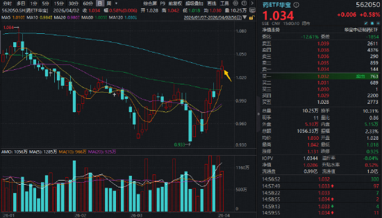 医药板块逆市飘红彰显韧性,创新药龙头三生国健绩后狂飙逾13%创历史新高,药ETF华宝(562050)场内价格盘中一度涨超1.2%,收盘站上半年线!当前创新药或正处于“业绩兑现、出海加速、会议催化”三重周期叠加的黄金窗口期,100%创新药研发标的——港股通创新药ETF华宝(520880)继昨日爆量收涨6.99%,创下上市以来最大单日涨幅之后,今日再度收涨。