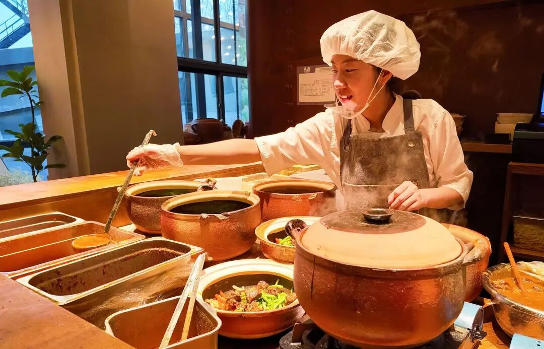 “开业以来运营符合预期,客流和翻台率保持在健康区间。”门店负责人陈真告诉记者,顾客以周边白领、年轻群体、社区居民及游客为主,年龄覆盖广泛。其中,砂锅排骨豆角焖面、砂锅羊肉辣皮子焖面点击率最高,成为当之无愧的招牌。