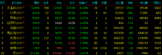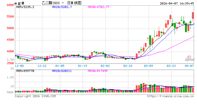 收评|国内期货主力合约涨跌不一,乙二醇封涨停 admin 今天 5 默认 摘要: ... 2026年4月7日,国内期货主力合约涨跌不一,乙二醇封涨停,甲醇、塑料涨超8%,聚丙烯涨超7%,丙烯涨超6%,纯苯、BR橡胶涨超3%。跌幅方面,多晶硅跌超4%,红枣、苹果、油菜籽跌超3%,烧碱、氧化铝、生猪跌超2%。 打赏 觉得文章有用就打赏一下文章作者 支付宝扫一扫打赏 微信扫一扫打赏 海报 阅读 QQ 分享 微博分享 微信分享 分享 上一篇中国国民党主席郑丽文率团抵达大陆 合富中国上演“地天板”行情 下一篇特斯拉适配鸿蒙操作系统:海外厂商主动入局,鸿蒙已成全球开发者适配必选项 中国国民党主席郑丽文率团抵达大陆 合富中国上演“地天板”行情上一篇 特斯拉适配鸿蒙操作系统:海外厂商主动入局,鸿蒙已成全球开发者适配必选项下一篇 相关推荐 丰年出大力!中信、国泰海通、中金等去年自营收入过百亿 2026-04-07 华创证券:维持绿城中国“推荐”评级 目标价12.3港元 2026-04-07 东方证券:维持华润啤酒“买入”评级 目标价为35.35港元 2026-04-07 收评|国内期货主力合约涨跌不一,乙二醇封涨停 2026-04-07 严牌股份(301081):中标陕西延长中煤榆林能源化工股份有限公司采购项目,中标金额为232.52万元 2026-04-07 折叠屏多股涨停!这家公司独家回应:已进入苹果折叠屏供应链 2026-04-07 中东局势推升美元避险需求叠加日本消费疲软,美元兑日元再度测试160整数关压力 2026-04-07 特朗普:对伊朗感到不满,伊朗将付出沉重代价 2026-04-07