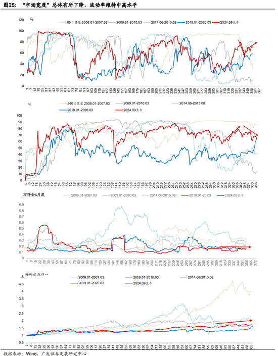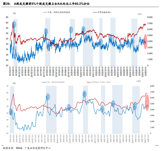 总量上,市场缩量收跌,市场宽度集中度一降一升,轮动速度重新回落,波动维持高位,股债波动比再拉大。(1)节后A股两市缩量,日均成交额2.45万亿元,周环比-6.46%。(2)融资买入占比边际回升,收于9.45%。(3)全A宽度继续下降,指数成分股中各成分股超越股票自身20日均线的占比降至34.61%左右(上周为41.31%);超60日均线占比下降,至50.28%(上周为54.41%),240日均线占比上升,至65.46%水平(上周为67.53%)。(4)全A集中度小幅上升,A股成交额前5%的个股成交额占全部A股比重上升至40.94%(上周为40.72%),处于60.2%历史分位。(5)全A轮动速度重新回落,我们编制的申万二级行业轮动速度指数提示行业排名周均变动频次至5197次(上周为5221次)。(6)全A波动率维持中高水平,滚动1月的实际波动率(HV)维持在14.9%(上周为15.1%)。股债年化波动率比值升至14.96倍。