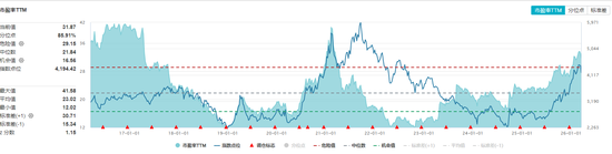 两张图大概是这样看:蓝色线是股价,蓝色阴影面积是估值,三根虚线是分位数,越靠近红色虚线说明所处历史分位点越高。