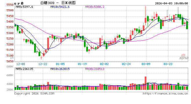 消息方面,2025/26榨季截至3月31日,泰国累计甘蔗入榨量为10271.14万吨,较去年同期的9196.2万吨增加1074.94万吨,增幅11.69%;甘蔗含糖分12.91%,较去年同期的12.61%增加0.3%;产糖率为11.264%,较去年同期的10.917%增加0.347%;产糖量为1156.93万吨,较去年同期的1003.93万吨增加153万吨,增幅15.24%。现货报价方面,广西制糖集团报价区间5370~5450元/吨,下调10~20元/吨;云南制糖集团报价5230~5300元/吨,部分下调10元/吨;加工糖厂主流报价区间为5660~5850元/吨,部分下调10~20元/吨。原糖方面,因泰国产量乐观、巴西新榨季开启,期价承压,原油价格快速反复,商品被动跟随,市场情绪疲惫。国内方面,市场移仓至9月合约,期价在5360元/吨附近徘徊,重新寻找底部支撑,清明假期在即,国际局势复杂多变,谨慎留仓,关注3月主产区产销数据。