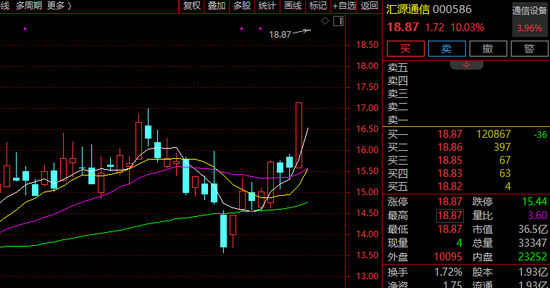 光纤概念延续强势,汇源通信2连板,亨通光电、长飞光纤、永鼎股份、中天科技、通鼎互联跟涨。